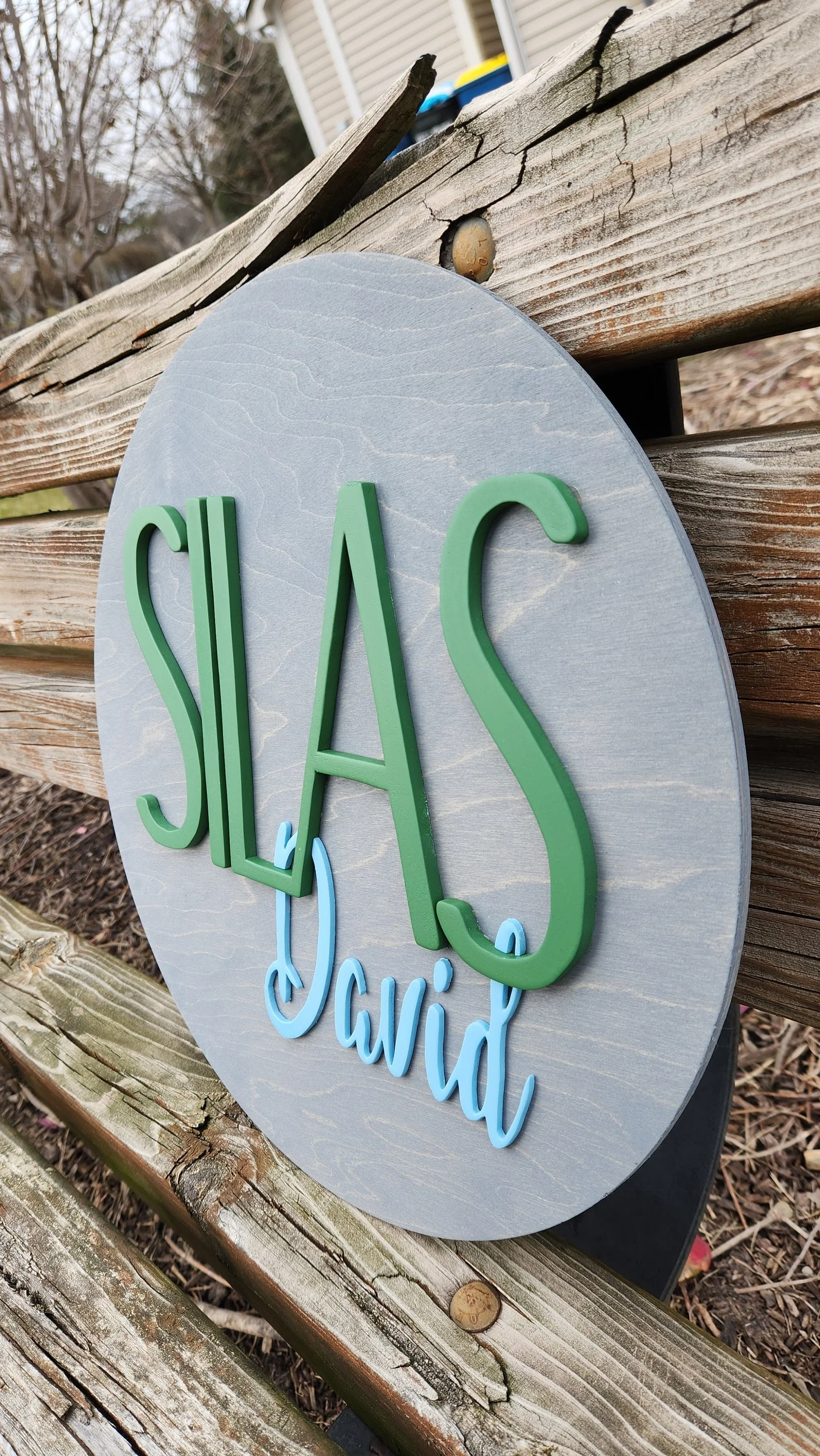The sign in the picture used Leslie for the first name and Audrey as the middle name. The stain used was Weathered Grey.